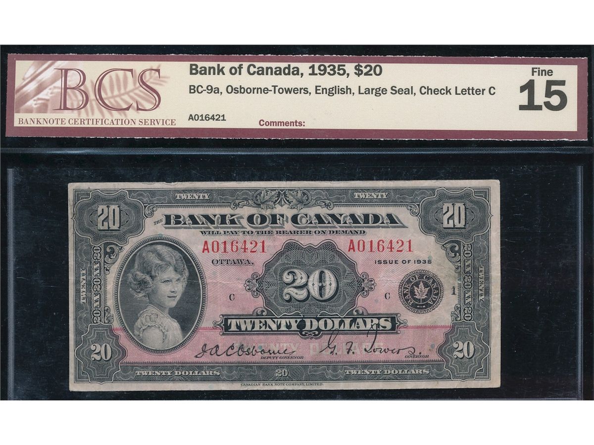 1935 $20 BC-9a #A016421, BCS F15.