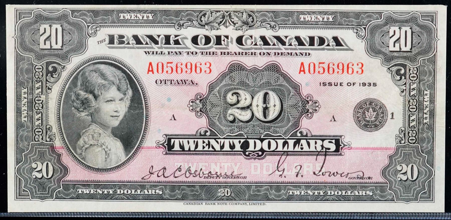 1935 $20 BC-9b "Small Seal" #A056963 CCCS Choice Very Fine-30, Bright example with nice colours.