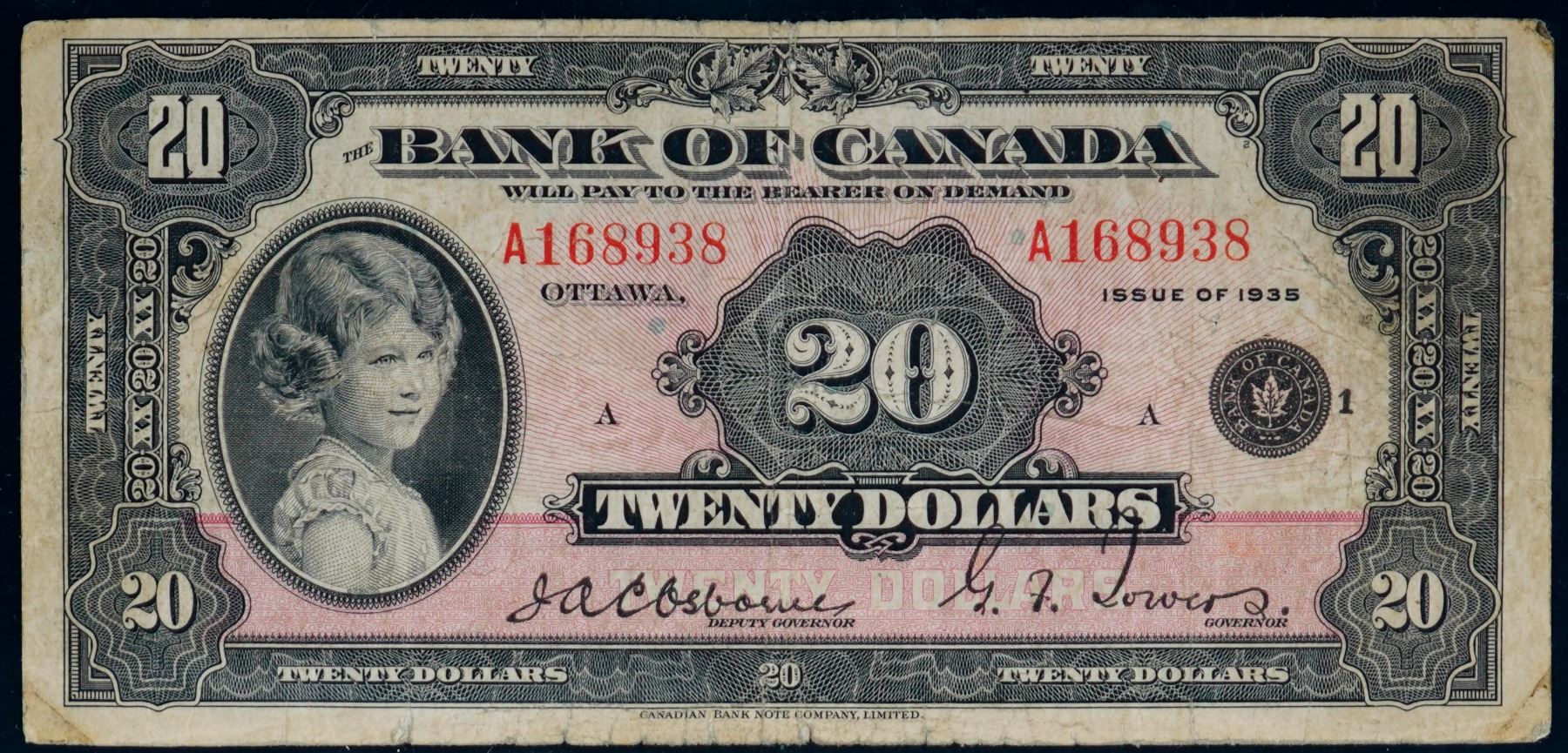 1935 $20 BC-9b "Small seal" #A168938 Fine or better.