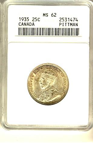 1935 25¢ ANACS MS62. Pittman example.