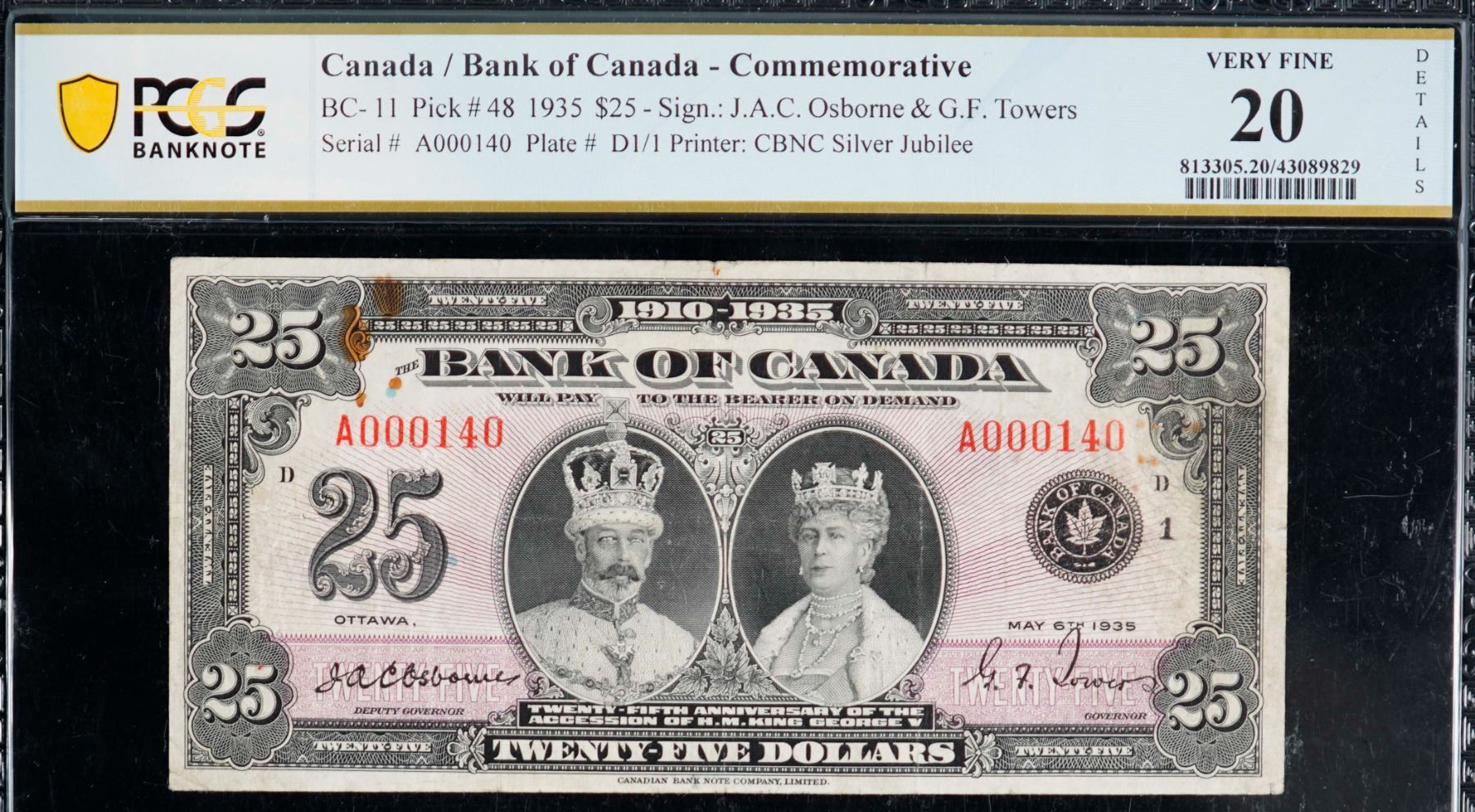1935 $25 BC-11 #A000140, PCGS Very Fine-20 w/issues. Low Serial Number.
