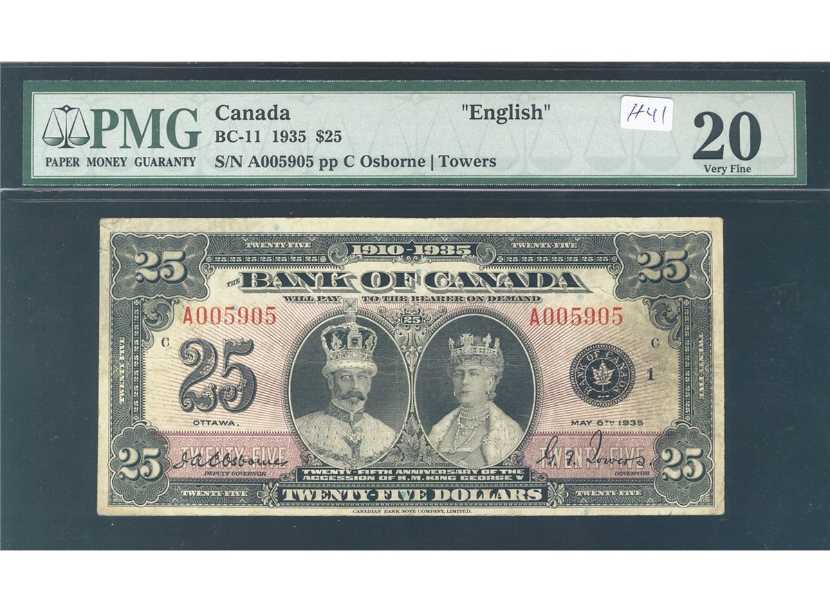 1935 $25 BC-11 #A005905 PMG VF20. Nice problem free example.