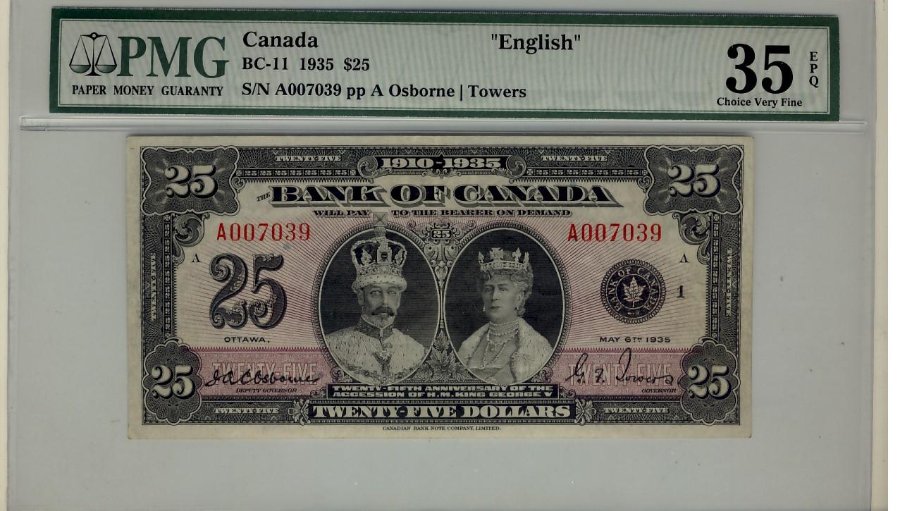 1935 $25 BC-11 #A007039 PMG VF35. A bright and sharp note for grade.
