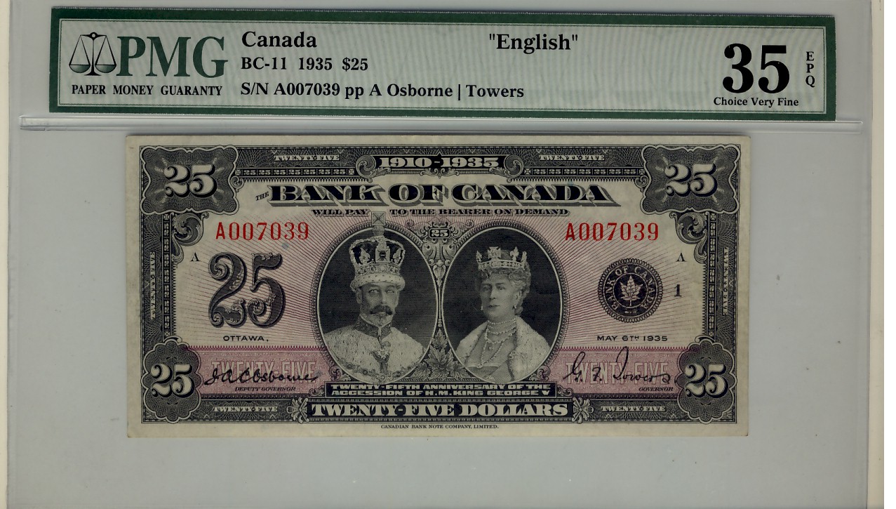 1935 $25 BC-11 #A007039 PMG VF35. A bright and sharp note for grade.