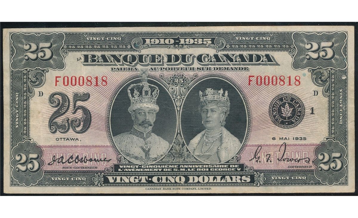 1935 $25 BC-12 #F000818. A nisce Low serial issue in VF to VF+ condition. Problem free.