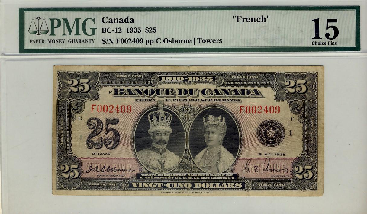 1935 $25 BC-12 #F002409, PMG CH F15.