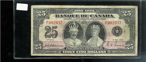 1935 $25 French text BC-12 F002937, F/F+ a very well centered note. A problem free example!
