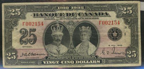 1935 $25 French text F002154 BC-12 about VF, a very well centered note with bright colours. A problem free example!