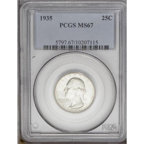 1935 25C MS67 PCGS. An impeccable frosty-white specime 1935[25C] MS67 PCGS.