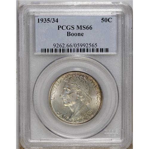 <B>1935/34 50C Boone MS66 PCGS.</B></I> Subtle champagne and powder-blue color rests over highly lustrous surfaces that are devoid of significant marks. The design elements are exceptionally well struck.<BR><BR><b>Shipping:</b> Coin/Currency (<a target="_blank" href="http://www.heritageauctions.com/common/shipping.php">view shipping information</a>)
