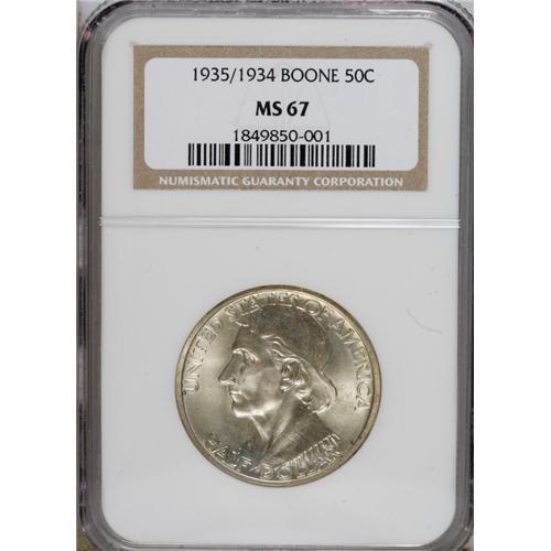 1935/34 50C Boone MS67 NGC. Light sky-blue and tawny-g