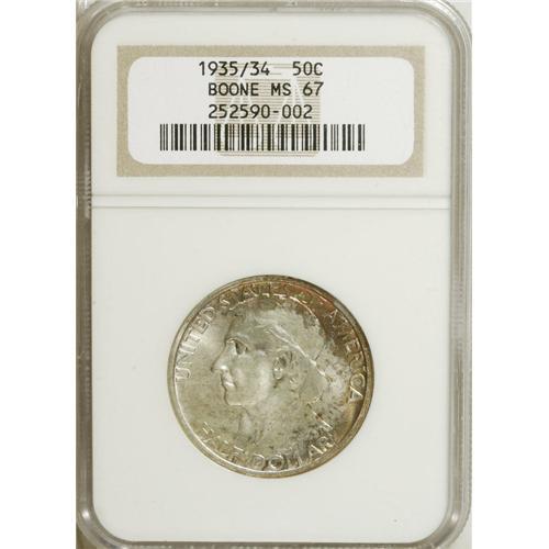 1935/34 50C Boone MS67 NGC. With 10,008 pieces minted,