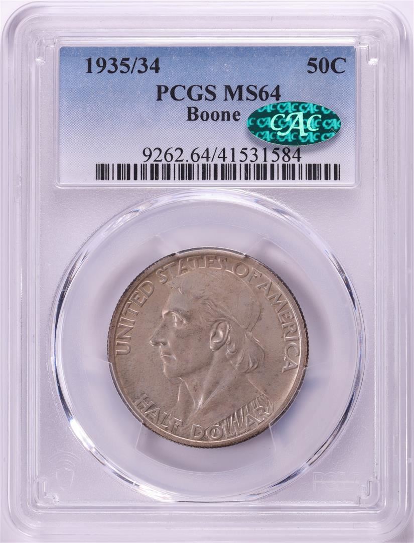 One 1935/34 Boone Commemorative Half Dollar Coin PCGS MS64 CAC. PCGS Graded.