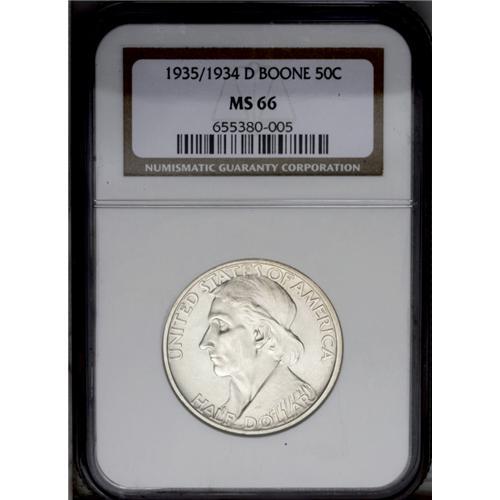 1935/34-D 50C Boone MS66 NGC. An essentially brilliant 1935/34-D[50C] Boone MS66 NGC.
