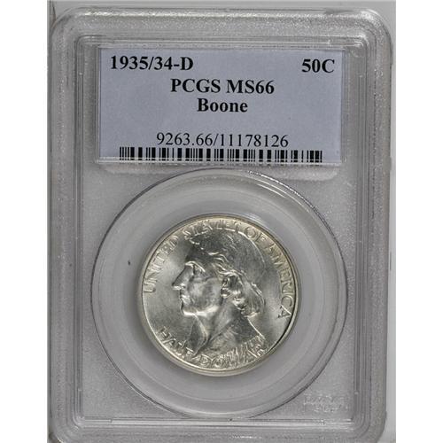 <B>1935/34-D<50C> Boone MS66 PCGS.</B></I> Nearly brilliant in the centers with copper-russet color along parts of the reverse rims. A high-quality survivor from the tiny mintage of 2,003 coins.