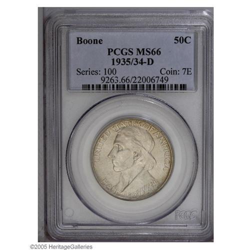 1935/34-D 50C Boone MS66 PCGS. Smooth, virtually unmar 1935/34-D[50C] Boone MS66 PCGS.