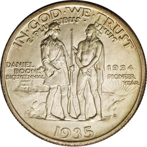 1935/34-S 50C Boone MS64 NGC. Apricot and slate-gray c 1935/34-S[50C] Boone MS64 NGC.