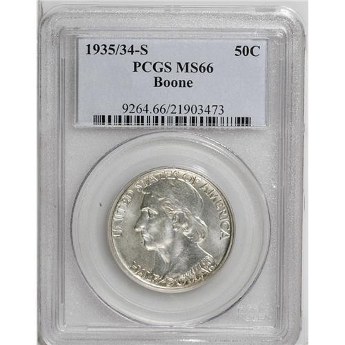<B>1935/34-S<50C> Boone MS66 PCGS.</B></I> A practically brilliant example with hints of ice-blue on the portrait's jacket. A sharply struck piece with great eye appeal.