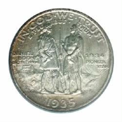 <table><tr><td><TABLE cellSpacing=0 cellPadding=0 width="100%" bgColor=#000000 border=0><TBODY> <TR><TD width="100%"><TABLE cellSpacing=1 cellPadding=3 width="100%" border=0><TBODY><TR><TD width="100%" bgColor=#79735c><FONT face=arial color=#ffffff size=3><B>Description</B> </FONT></TD></TR><TR><TD width="100%" bgColor=#ffffff><FONT face=arial size=2><B>1935/34-S 50C Boone MS67 PCGS.</B></I> Rich russet and apple-green toning at least partially frames each side. Only the wispiest frost breaks on the frontiersman's cheek reveal contact of any sort. Quite scarce in this near-ultimate condition. Population: 9 in 67, 2 finer (10/03). </FONT></TD></TR></TBODY></TABLE></TD></TR></TBODY></TABLE><BR><A name=PricesRealized></A><TABLE cellSpacing=0 cellPadding=0 width="100%" bgColor=#000000 border=0><TBODY><TR><TD width="100%"><TABLE cellSpacing=1 cellPadding=3 width="100%" border=0><TBODY><TR><TD width="100%" bgColor=#79735c><A name=PR><FONT face=arial color=#ffffff size=3><B>Previous Prices from Heritage Auctions</B> </FONT></A></TD></TR><TR><TD bgColor=#f6f6ed><TABLE cellSpacing=0 cellPadding=0 width="100%" border=1><TBODY><TR><TD align=middle width="33%"><B>Date</B></TD><TD align=middle width="33%"><B>Service</B></TD><TD align=middle width="33%"><B>Price</B></TD></TR><TR bgColor=whitesmoke><TD width="33%"><B>05/31/2003</B></TD><TD width="33%">PCGS</TD><TD width="33%">$4,945.00</TD></TR><TR bgColor=whitesmoke><TD width="33%"><B>09/28/2002</B></TD><TD width="33%">NGC</TD><TD width="33%">$2,012.50</TD></TR><TR bgColor=whitesmoke><TD width="33%"><B>01/07/2000</B></TD><TD width="33%">NGC</TD><TD width="33%">$2,645.00</TD></TR></TBODY></TABLE></TD></TR><TR><TD bgColor=#ffffff><FONT face=arial size=1 ?>PLEASE NOTE: All prices realized reflect the final hammer price PLUS the buyer's premium in auctions that charge a buyer's premium. Each item has a notation at the top of the listing indicating whether that lot included a buyer's premium. Example: A item that sells with a final hammer price of $100 and a 20% buyer's premium will display with a price realized of $120. All information listed is intended to be as accurate as possible, but errors are possible. Please use this guide carefully and inform us of any inaccuracies. </FONT></TD></TR></TBODY></TABLE></TD></TR></TBODY></TABLE><BR><TABLE cellSpacing=0 cellPadding=0 width="100%" bgColor=#000000 border=0><TBODY><TR><TD width="100%"><TABLE cellSpacing=1 cellPadding=3 width="100%" border=0><TBODY><TR><TD width="100%" bgColor=#79735c colSpan=6><FONT face=arial color=#ffffff size=3><B>Price Guide*</B> </FONT></TD></TR><TR bgColor=#f6f6ed><TD align=middle><B>Grade</B> </TD><TD align=middle><B>Coin World<BR>(Trends)</B> </TD><TD align=middle><B>Numismedia<BR>Retail</B> </TD><TD align=middle><B>Numismedia<BR>Wholesale</B> </TD><TD align=middle><B>Coin<BR>Universe</B> </TD><TD align=middle><B>Heritage<BR>Value Index</B> </TD></TR><TR bgColor=#ffffff><TD align=middle>66</TD><TD align=right>---</TD><TD align=right>---</TD><TD align=right>$1,265.00</TD><TD align=right>$2,500.00</TD><TD align=right>$1,083.33</TD></TR><TR style="FONT-WEIGHT: bold" bgColor=#cccfdd><TD align=middle>67</TD><TD align=right>---</TD><TD align=right>---</TD><TD align=right>$3,975.00</TD><TD align=right>$9,000.00</TD><TD align=right>$6,300.00</TD></TR><TR bgColor=#ffffff><TD align=middle>68</TD><TD align=right>---</TD><TD align=right>---</TD><TD align=right>---</TD><TD align=right>---</TD><TD align=right>---</TD></TR><TR bgColor=#ffffff><TD colSpan=6><FONT size=1>*All information listed is intended to be as accurate as possible, but errors are possible. No item may be returned or refused based on this information which is provided as a service to our customers. You should contact each pricing source directly to determine the accuracy of this information. </FONT></TD></TR></TBODY></TABLE></TD></TR></TBODY></TABLE><BR><TABLE cellSpacing=0 cellPadding=0 width="100%" bgColor=#000000 border=0><TBODY><TR><TD width="100%"><TABLE cellSpacing=1 cellPadding=3 width="100%" border=0><TBODY><TR><TD width="100%" bgColor=#79735c><FONT face=arial color=#ffffff size=3><B>Population Guide</B> </FONT></TD></TR><TR bgColor=#ffffff><TD align=middle><!-- Begin Output of Population Grid--><TABLE cellSpacing=0 cellPadding=0 width="100%" border=0><TBODY><TR><TD vAlign=center><TABLE cellSpacing=0 width="100%" border=1 cellsadding="3"><TBODY><TR><TD vAlign=center><TABLE cellSpacing=0 cellPadding=3 width="100%" border=1><TBODY><TR><TD vAlign=center align=middle bgColor=#f0f1e8 colSpan=2 <CENTER><FONT face=Arial size=2><B>PCGS Pop </B></FONT><CENTER></CENTER></TD><TD vAlign=center align=middle bgColor=#f0f1e8 colSpan=2><CENTER><FONT face=Arial size=2><B>NGC Pop</B></CENTER></FONT></TD></TR><TR><TD vAlign=center><FONT face=Arial size=2>(67)</FONT> </TD><TD vAlign=center align=right><FONT face=Arial size=2>9</FONT> </TD><TD vAlign=center><FONT face=Arial size=2>(67)</FONT> </TD><TD vAlign=center align=right><FONT face=Arial size=2>12</FONT> </TD></TR><TR><TD vAlign=center><FONT face=Arial size=2>(>67)</FONT> </TD><TD vAlign=center align=right><FONT face=Arial size=2>2</FONT> </TD><TD vAlign=center><FONT face=Arial size=2>(>67)</FONT> </TD><TD vAlign=center align=right><FONT face=Arial size=2>4</FONT> </TD></TR></TBODY></TABLE></TD></TR></TBODY></TABLE></TD></TR></TBODY></TABLE><!-- End Output of Population Grid--></TD></TR></TBODY></TABLE></TD></TR></TBODY></TABLE><BR><TABLE cellSpacing=0 cellPadding=0 width="100%" bgColor=#000000 border=0><TBODY><TR> Important notice: Heritage usually auctions material at the rate of 200-250 lots per hour. On some occasions eBay Live bid software or the Internet may not be able to keep up with the pace of the auction. We recommend placing a realistic absentee bid now as insurance to avoid disappointment. Occasionally the auctioneer may eliminate or reject an eBay Live bid, and the auctioneer may also reopen a lot after the close of the eBay live bidding (usually because we missed an a