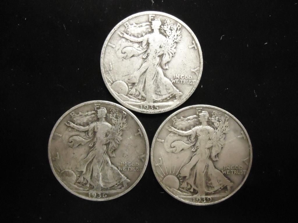 1935,36-S & 39-S WALKING LIBERTY HALF DOLLARS