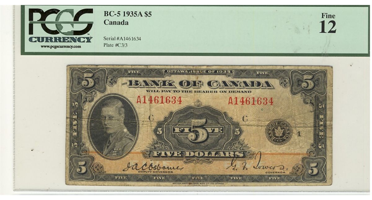 1935 $5 BC-5 #A1461634 PCGS F12.