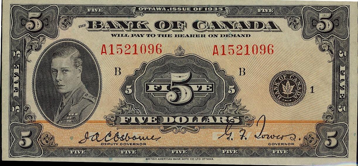 1935 $5 BC-5 A1521096 CCCS UNC-63, a nice and clean example