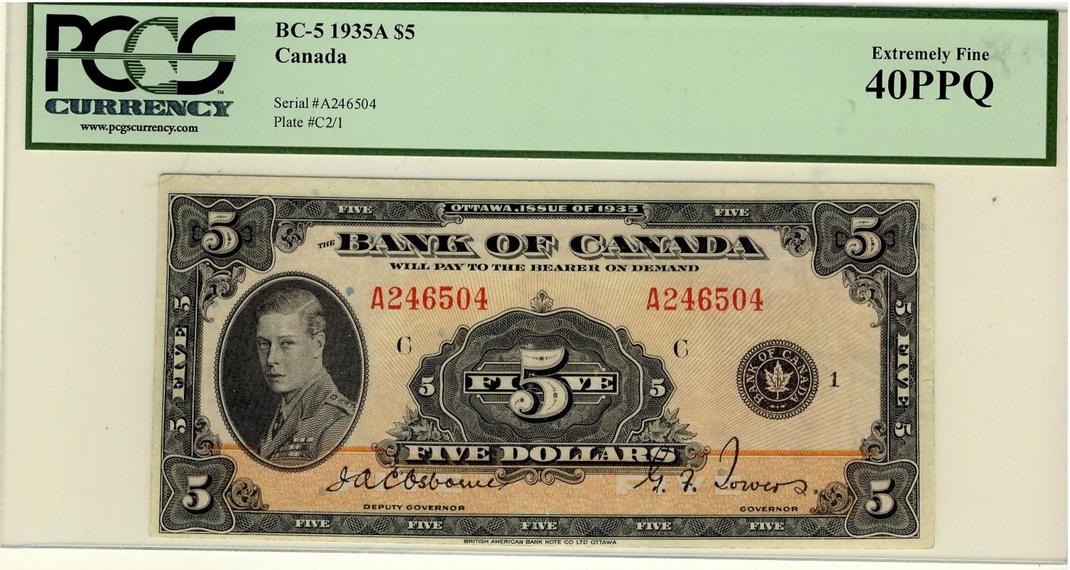 1935 $5 BC-5 #A246504, PCGS EF40PPQ.