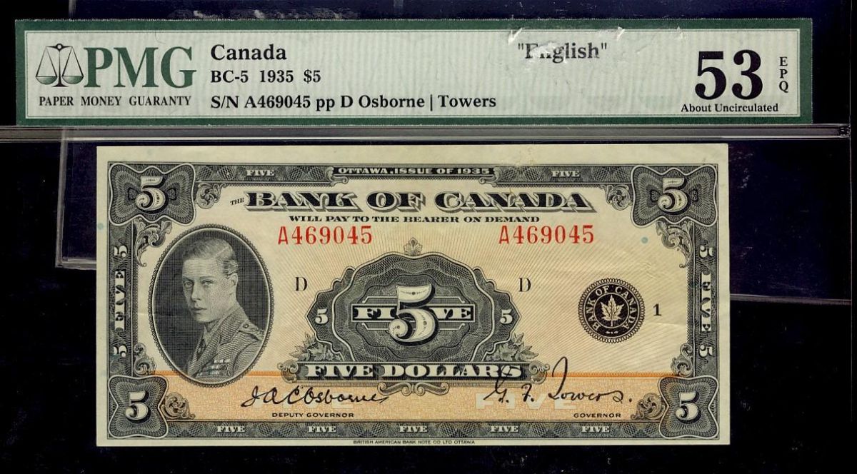 1935 $5 BC-5 #A469045 PMG CH AU53.