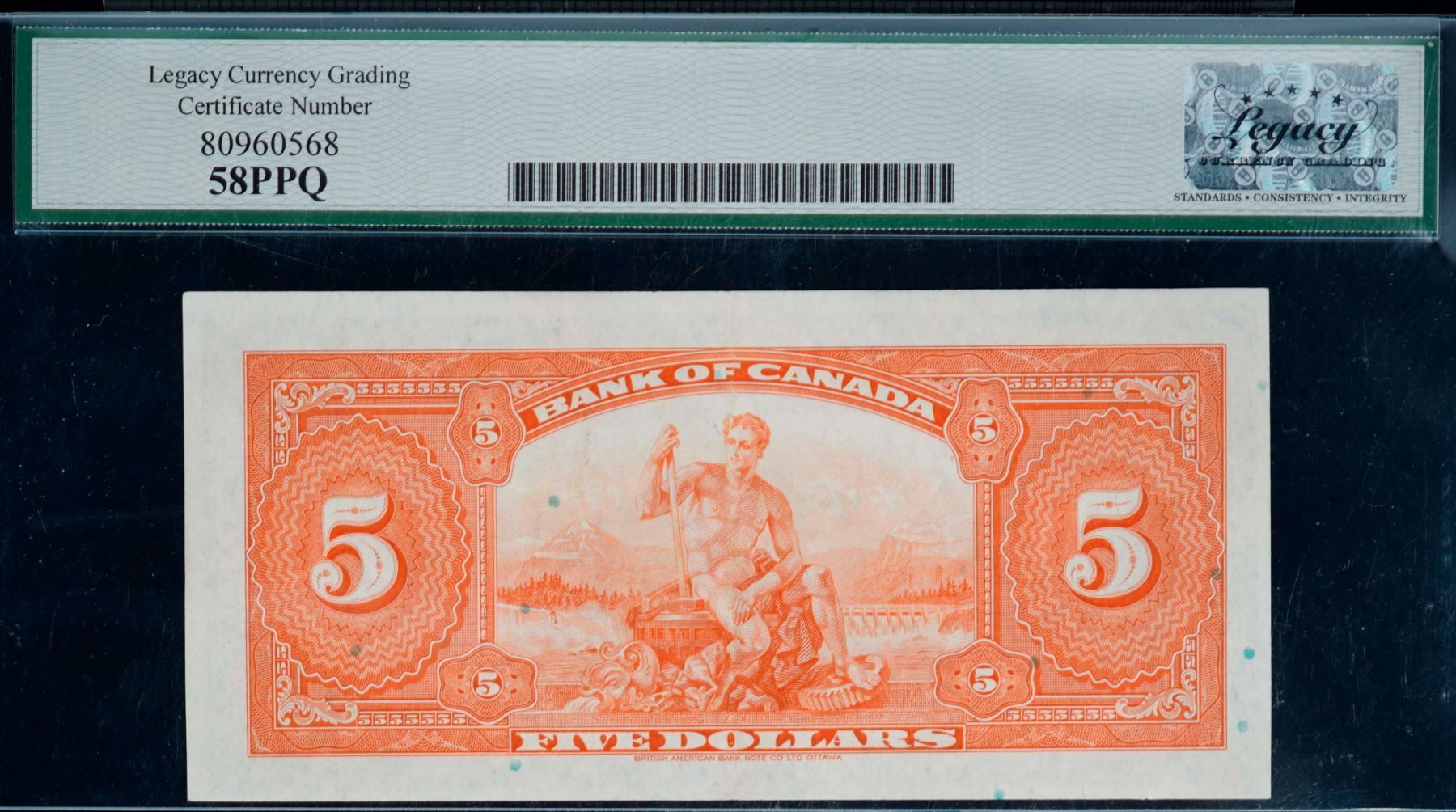 The cataloguer has taken every reasonable measure to ensure that all of the lots in this sale are as described and genuine. All raw coins and banknotes have been graded by the cataloger or the auction house which represent our best professional opinion. To grade coins and banknotes, we use Canadian grading standards, 42 years of experience and good conscience. However, grading is a subjective description in the opinion of the cataloger or the auction house. Among experts there are often differences of opinion on the grading and the eye appeal of a coin. The strike and the state of preservation are often debated. The Canadian Numismatic Company acts as an agent between consignors and buyers. The Canadian Numismatic Company does not guarantee that any coin or banknote cataloged will meet the standards, or the grade, of any third party grading companies. No warranty, whether impressed or implied. Items are as is, no warranty given. We cannot accept responsibility and waive all liability resulting in financial losses, and or incidentals accruing from the sale of any items, nor can we guarantee that items graded by third party services will grade the same if submitted to a different grading service or re-submitted to the same company. Statements by The Canadian Numismatic Company regarding the condition, the eye appeal, the strike and the population of items are for guidance only. All lots offered are sold "AS IS". Title to all lots remains with the auction house until paid for in full by the purchaser. But they are held at the risk of the purchaser once the time of the sale.