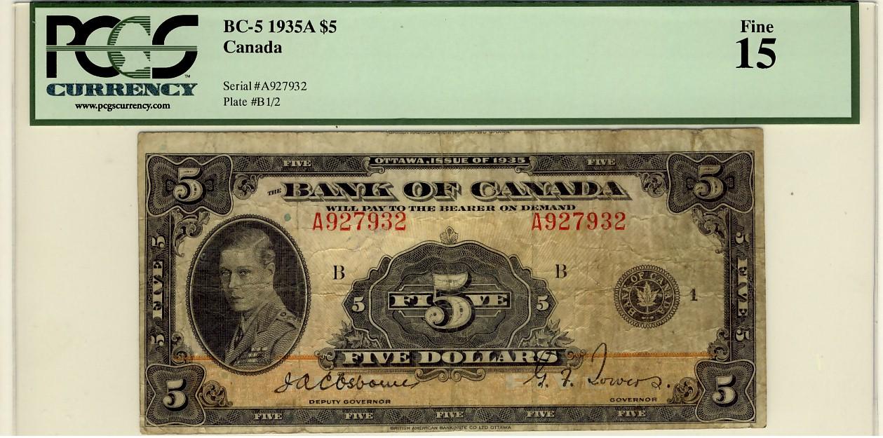 1935 $5 BC-5 #A927932 PCGS F15