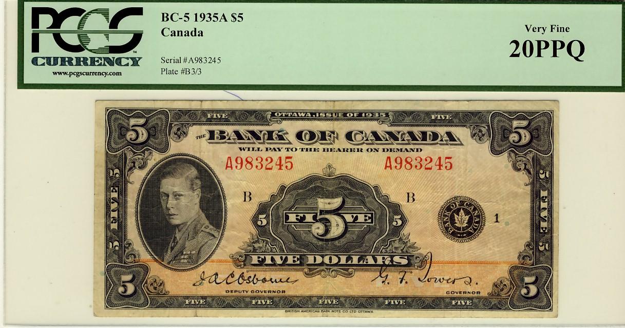 1935 $5 BC-5 #A983245 PCGS VF20PPQ