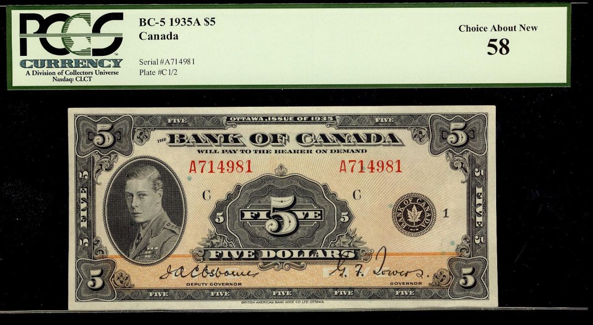 1935 $5 BC-5 English A714981 PCGS AU58, looks Uncirculated! Fresh colours