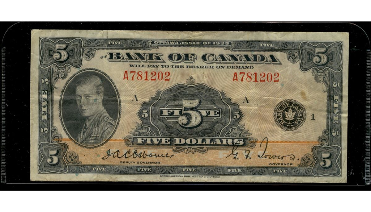 1935 $5 BC-5, Osborne-Towers signatures in F-VF Condition