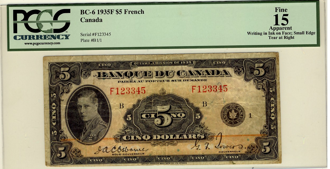 1935 $5 BC-6 #F123345 PCGS F15 APP