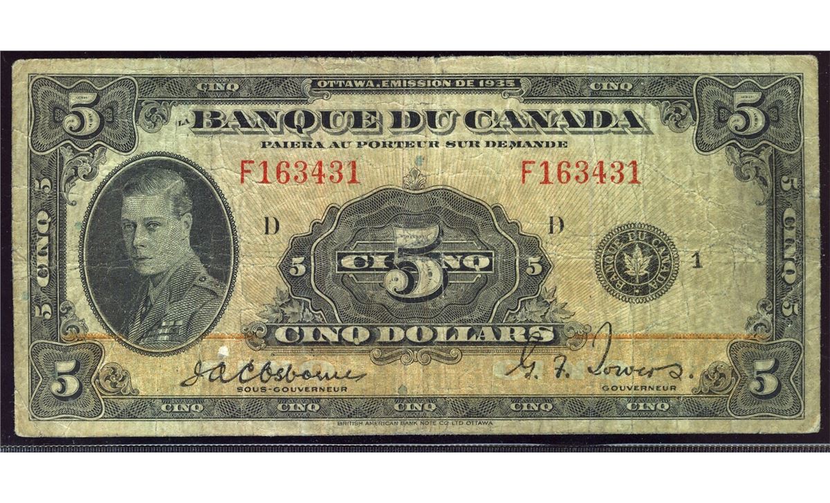 1935 $5 BC-6 #F163431, CCCS VG10.