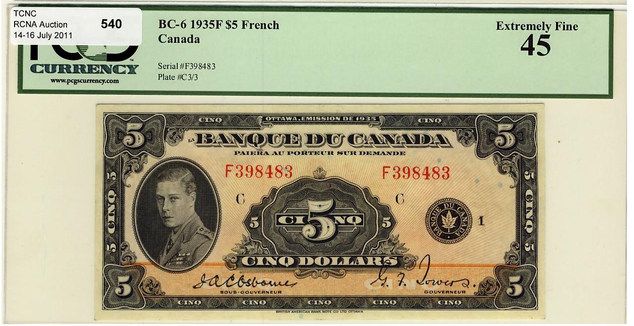 9. The cataloguer has taken every reasonable measure to ensure that all of the lots in this sale are as described and genuine. All raw coins and banknotes have been graded by the cataloguer or the auction house which represent our best professional opinion. To grade coins and banknotes, we use Canadian grading standards, 31 years of experience and good conscience. Grading is a subjective description in the opinion of the cataloguer or the auction house. Among experts there are often differences of opinion on the grading and the eye appeal of a coin. The strike and the state of preservation are often debated. TCNC acts as an agent between consignors and buyers. TCNC does not guarantee that any coin or banknote catalogued will meet the standards, or the grade, of any third party grading companies. No warranty, whether impressed or implied.