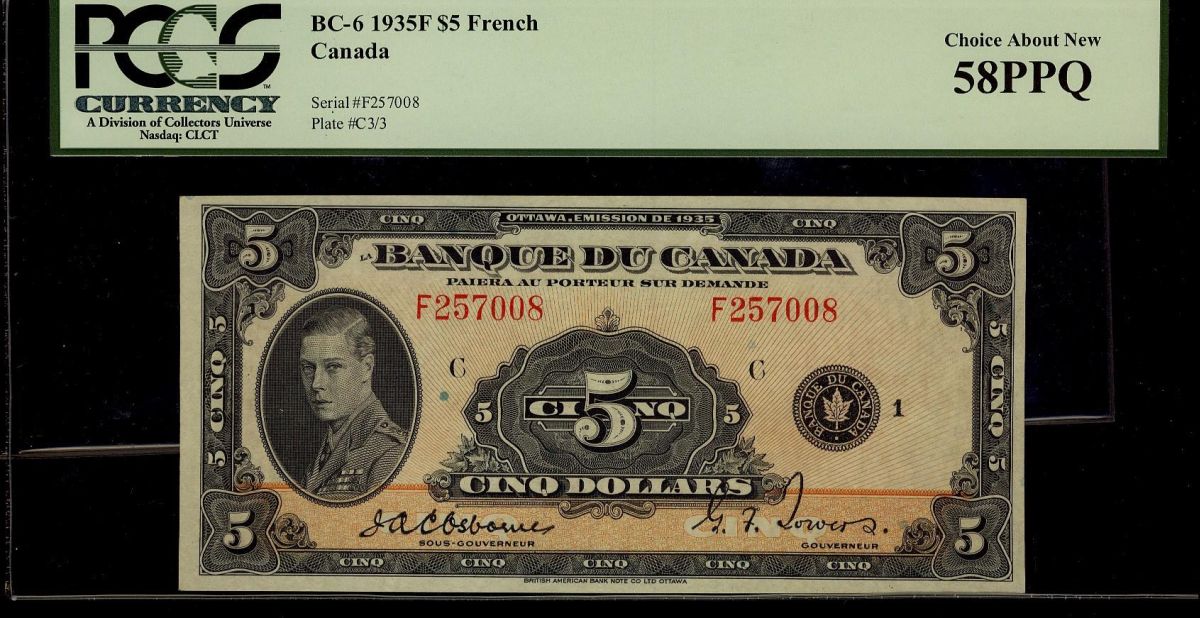 1935 $5 BC-6 French F257008 PCGS AU58 PPQ, Wow! Very flashy and looks Unc! Rare