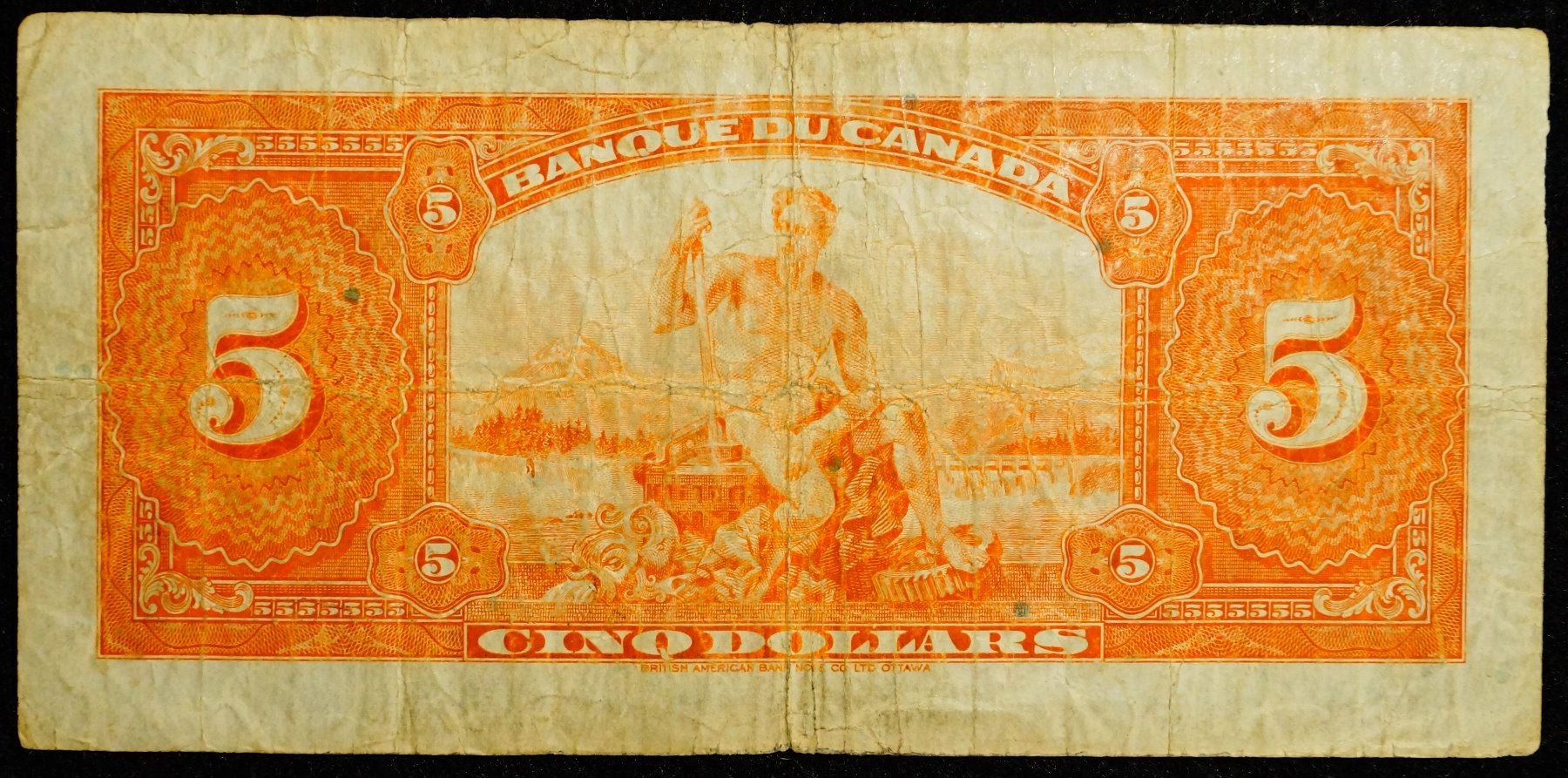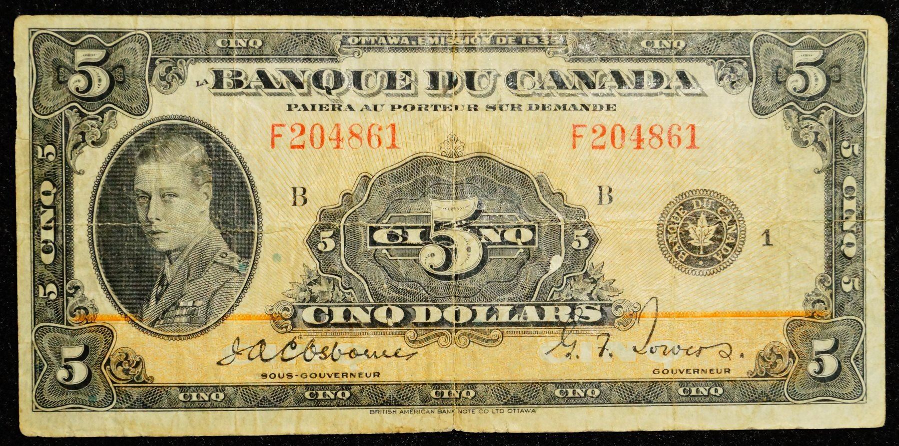 1935 $5 Dollar BC-6, Bank of Canada Banknote 'French' series