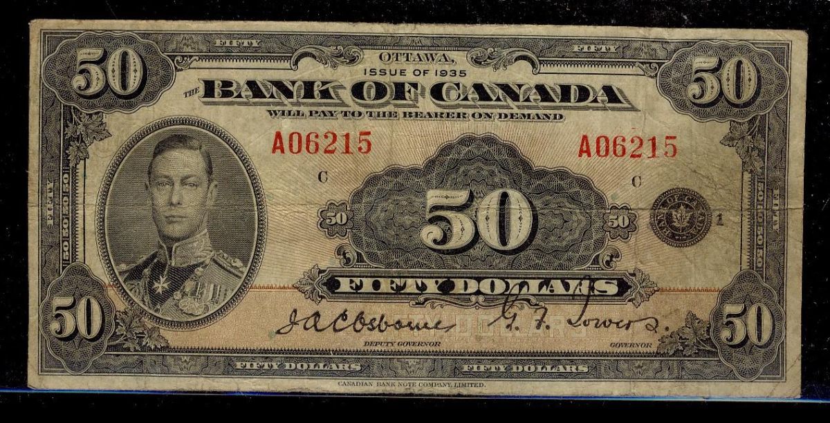 1935 $50 BC-13 #A06215. An underrated issue. Some light internal tears at top. Fine/possibly better.