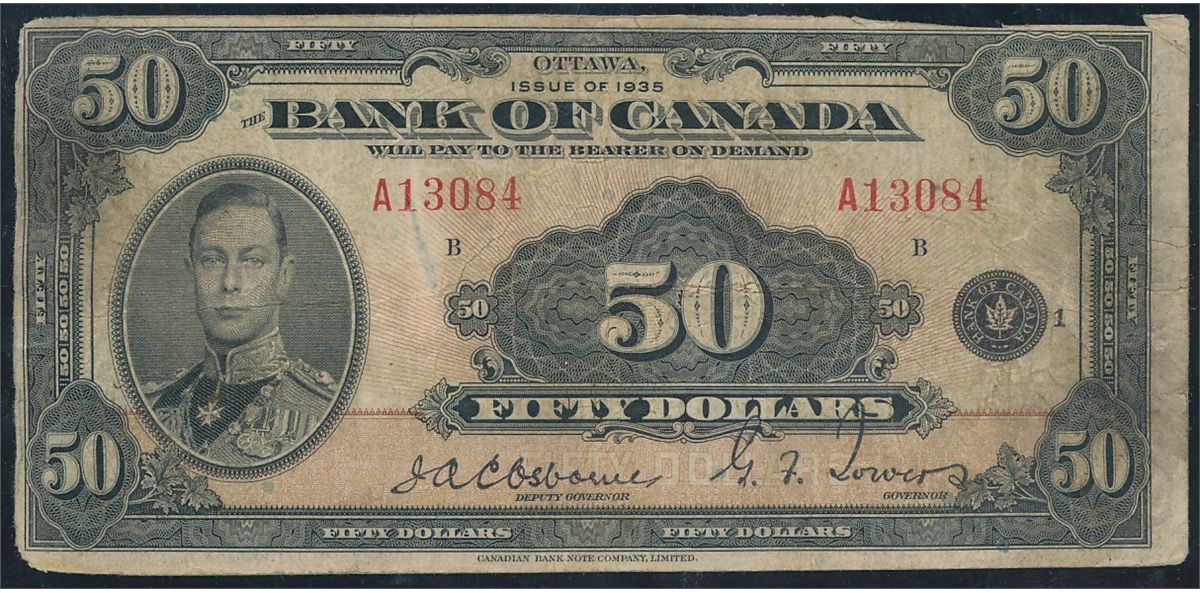 1935 $50 BC-13 #A13084, PMG CH F15 Net. Top margin miscut.