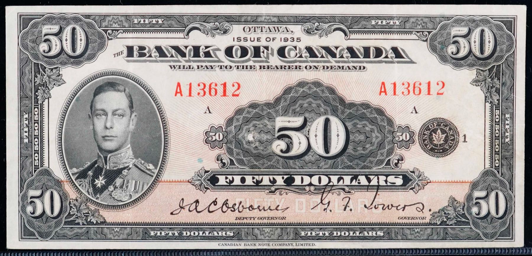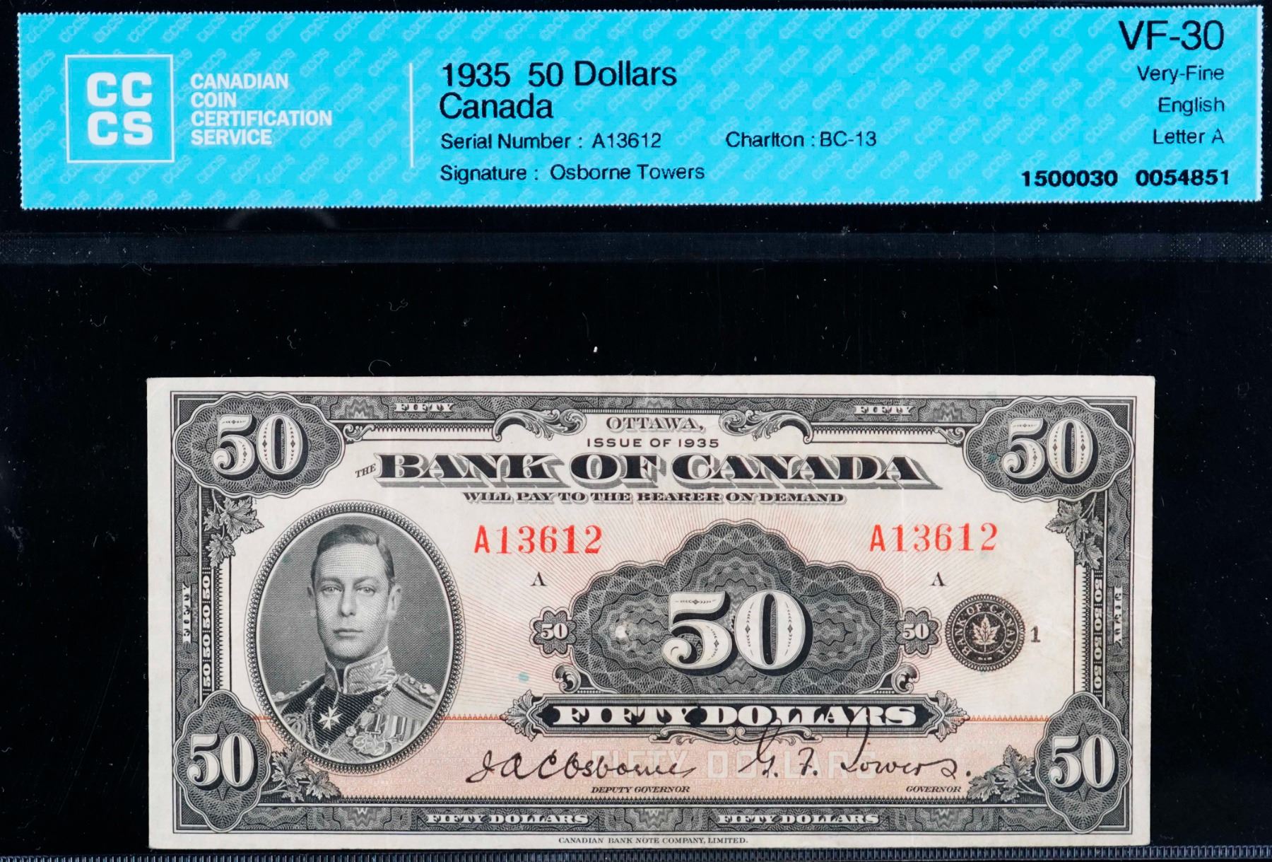 1935 $50 BC-13 #A13612 #A13612 CCCS Choice Very Fine-30. A bright example.