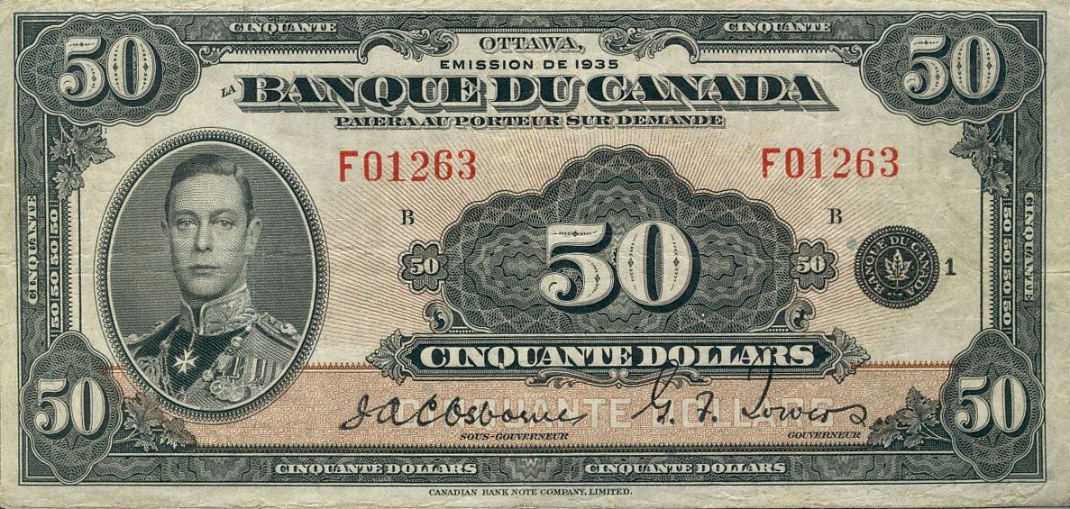 1935 $50 BC-14 #F01263 CCCS VF20. Scarce french issue.