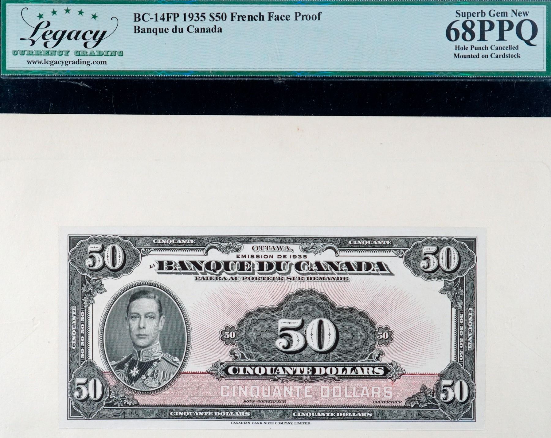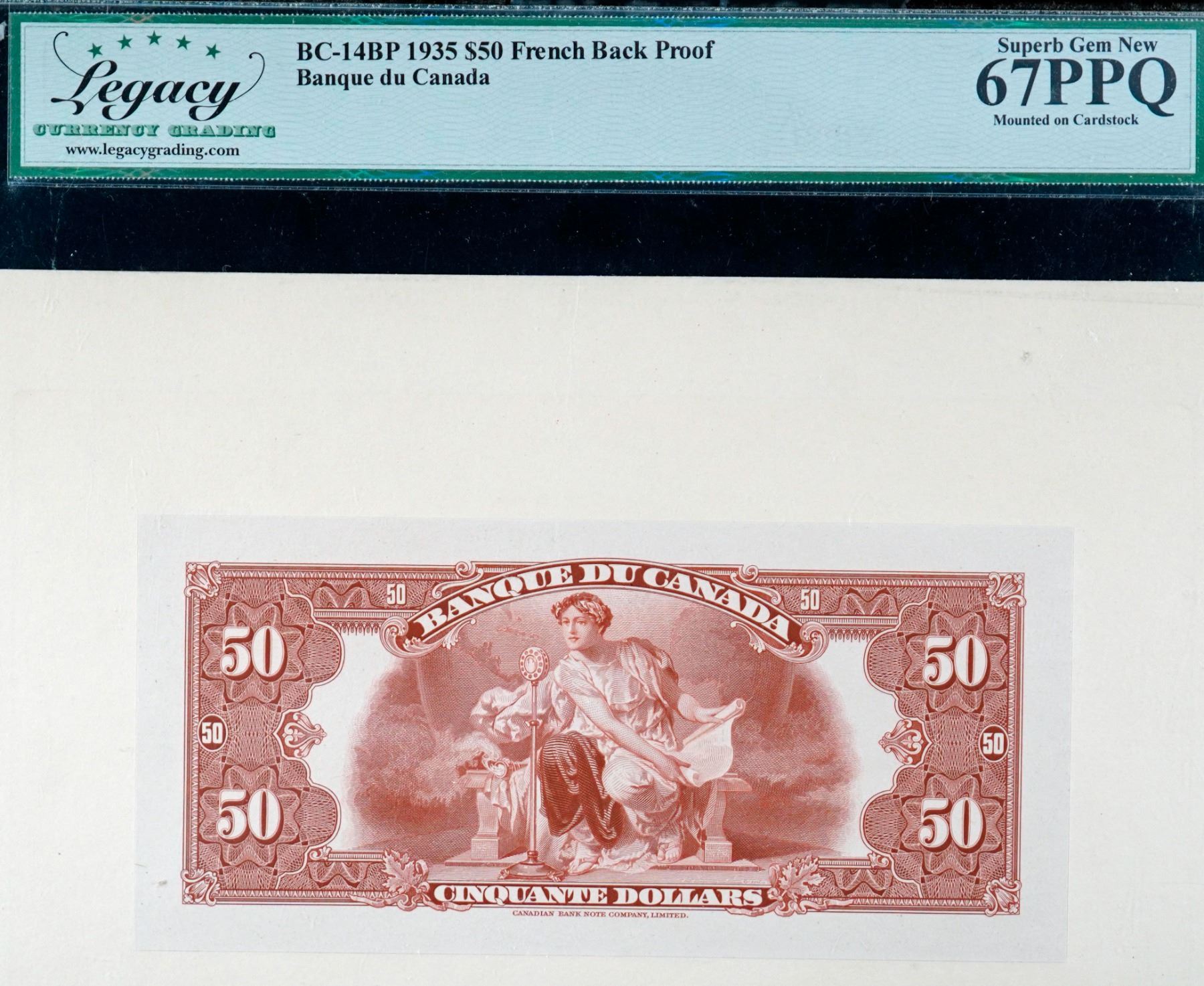 1935 $50 BC-14FP & BP - French Text Face and Back Proof examples. A superior set that should satisfy the most demanding of collectors. Proofs grade Legacy Currency Grading Superb Gem Uncirculated -68PPQ FP & Superb Gem Uncirculated -67PPQ BP.