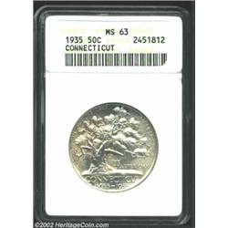 1935 50C Connecticut MS63 ANACS. The margins have hints of charcoal color. Well struck with pleasing