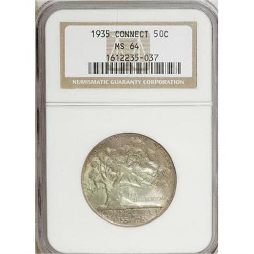 <B>1935 50C Connecticut MS64 NGC.</B></I> . NGC Census: (1065/1574). PCGS Population (1451/1513). Mintage: 25,018. Numismedia Wsl. Price for NGC/PCGS coin in MS64: $300. (#9299)<BR><BR><b>Shipping:</b> Coins & Currency (<a target="_blank" href="http://www.heritageauctions.com/common/shipping.php">view shipping information</a>)