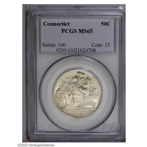 <B>1935<50C> Connecticut MS65 PCGS.</B></I> A highly lustrous and near mark-free specimen. A brilliant-white well defined specimen.