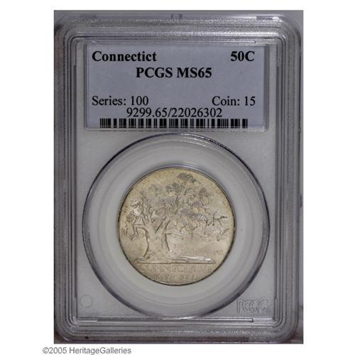 <B>1935<50C> Connecticut MS65 PCGS.</B></I> Light toned, with lustrous surfaces and well defined devices. Both sides are relatively well preserved.