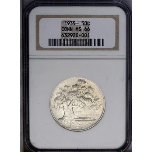 <B>1935<50C> Connecticut MS66 NGC.</B></I> An immaculately preserved and lustrous lemon-gold Gem with a good strike. A couple of minute milling marks on the upper right branch are mentioned for accuracy.<BR><I>From The Hayward Collection.</B></I>