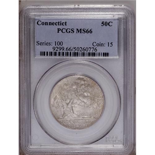 <B>1935 50C Connecticut MS66 PCGS.</B></I> Nicely defined and fully lustrous with attractive silvery-gray patina and a few light reverse contact marks that prevent a higher grade.