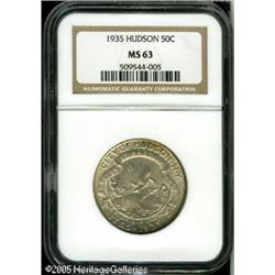 <B>1935 50C Hudson MS63 NGC.</B></I> Peripheral gold patina on the obverse takes on deeper reddish-gold hues on the reverse periphery. The design elements are well struck, and a few light marks are scattered over lustrous surfaces Lot:8502